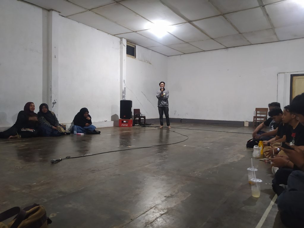 Diskusi yang dimulai pukul 20.00 WIB itu dihadiri berbagai elemen masyarakat. Dalam forum tersebut, para pembicara menyoroti situasi demokrasi yang dinilai menunjukkan gejala kemunduran, bahkan disebut menyerupai praktik pada masa Orde Baru. Mereka menilai pemerintah berupaya membungkam suara publik dengan menciptakan chilling effect atau efek ketakutan, antara lain melalui penetapan sejumlah peserta aksi sebagai tersangka dalam jumlah besar.