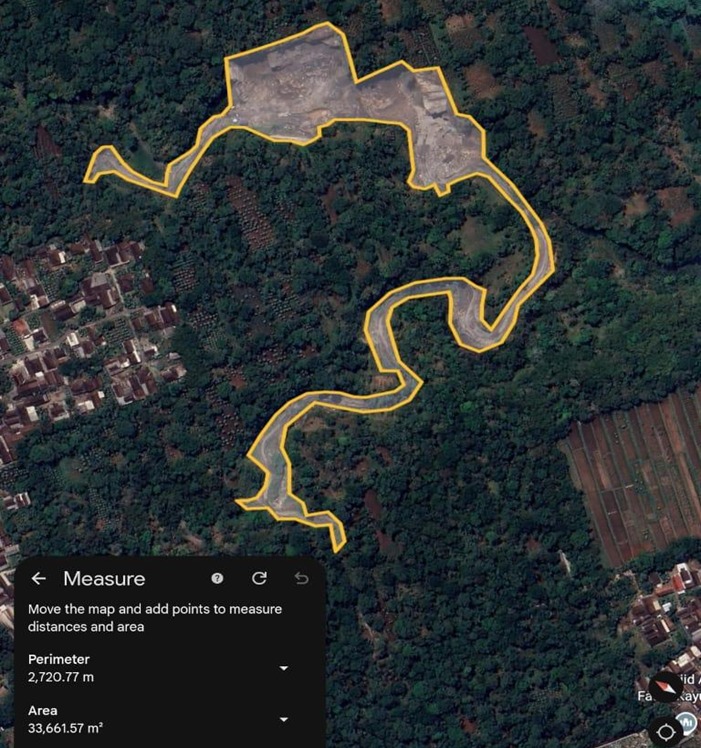 Potret kondisi tambang di daerah perbatasan Kayumas dan Sedayu yang ditemukan Locus melalui pencarian data di Google Earth (27/04/25)